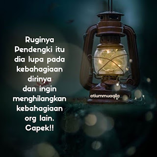 Ruginya jd Pendengki itu dia lupa pd kebahagiaan dirinya dan ingin menghilangkan kebahagiaan org lain. Capek!!